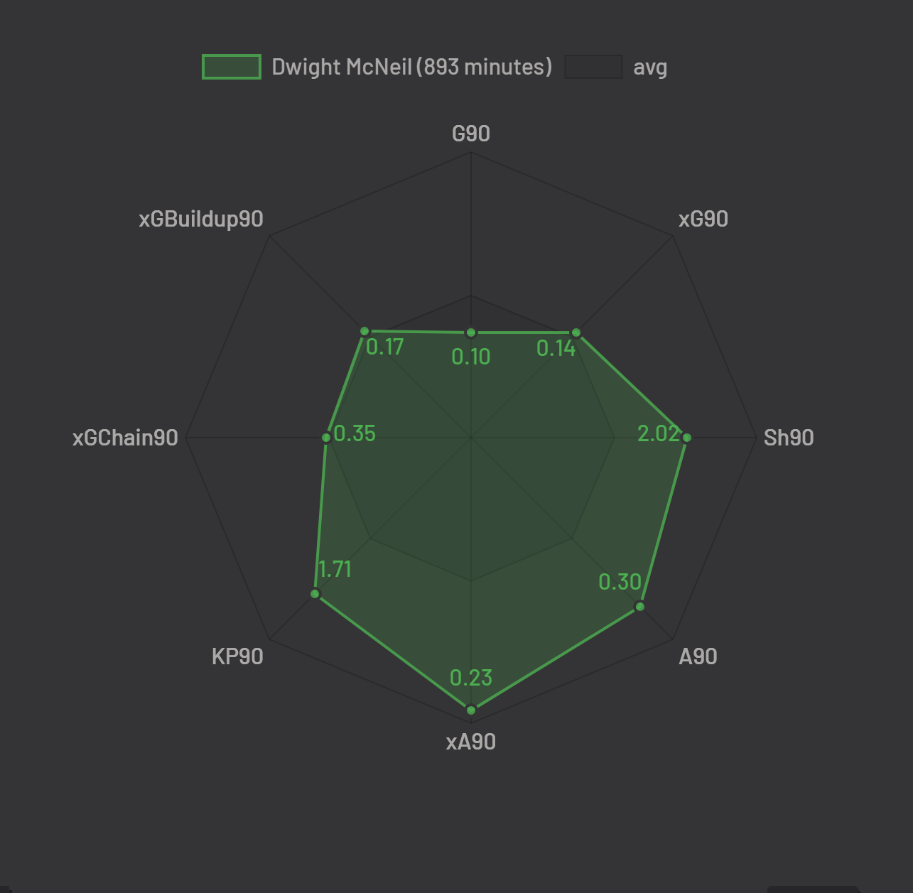Now, McNeil is sitting at a healthy 1.47 total xG, meaning that he’s actually under-performing his expected goals by 0.47. and his xA is currently at 2.28, indicating a sizable over-performance of 1.72. It’s always a very good sign when players’ expected totals are staying near their actual output, as it suggests that they’re not simply being fortunate in their returns. The over-performance on expected assists does somewhat concern me, as the majority of McNeil’s points have come from assists, leading me to believe his game to game average score may cool down in the near future.