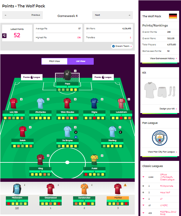 I am a big dumb idiot. I will admit, I got fully caught up in the hype here, being blinded by the red arrows that not owning the ever-so-popular Manchester United players brought, I got two in. Wanny-B himself is a class footballer, but the club is just rotten to the core. Another miserable performance makes me want to show Wan the door, as the next few fixtures don’t really suggest many cleans anyways.