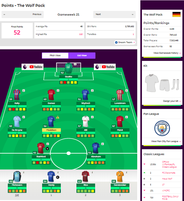 You beauty. A clean never looked in doubt, and he managed to hoover up two bonus somehow. Truly a mainstay in my squad. I am worried however, now that Ndidi is injured, how will the backline fare without his workrate?